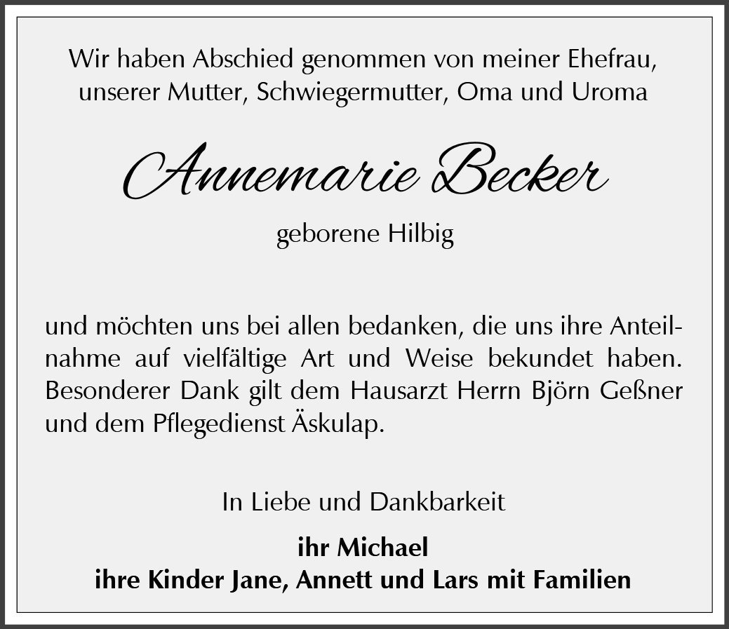 Annemarie Becker geb. Hilbig