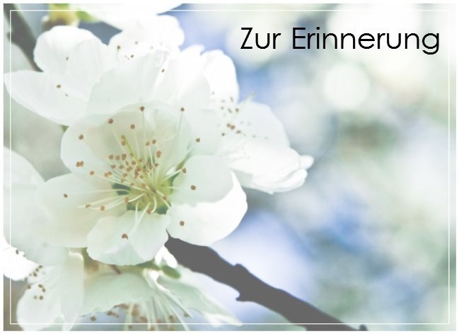 die Trauer mit anderen zu teilen, bedeutet mehr Kraft schöpfen zu können. Möge diese Gedenkseite Ihnen dabei Hilfe geben und die Möglichkeit erbringen, Gedanken, Gefühle und Erinnerungen weiterleben zu lassen.