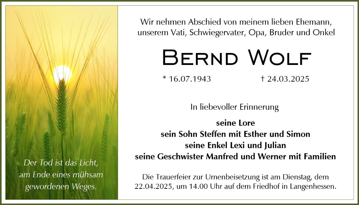gestorben am 24. März 2025 in Werdau OT Langenhessen