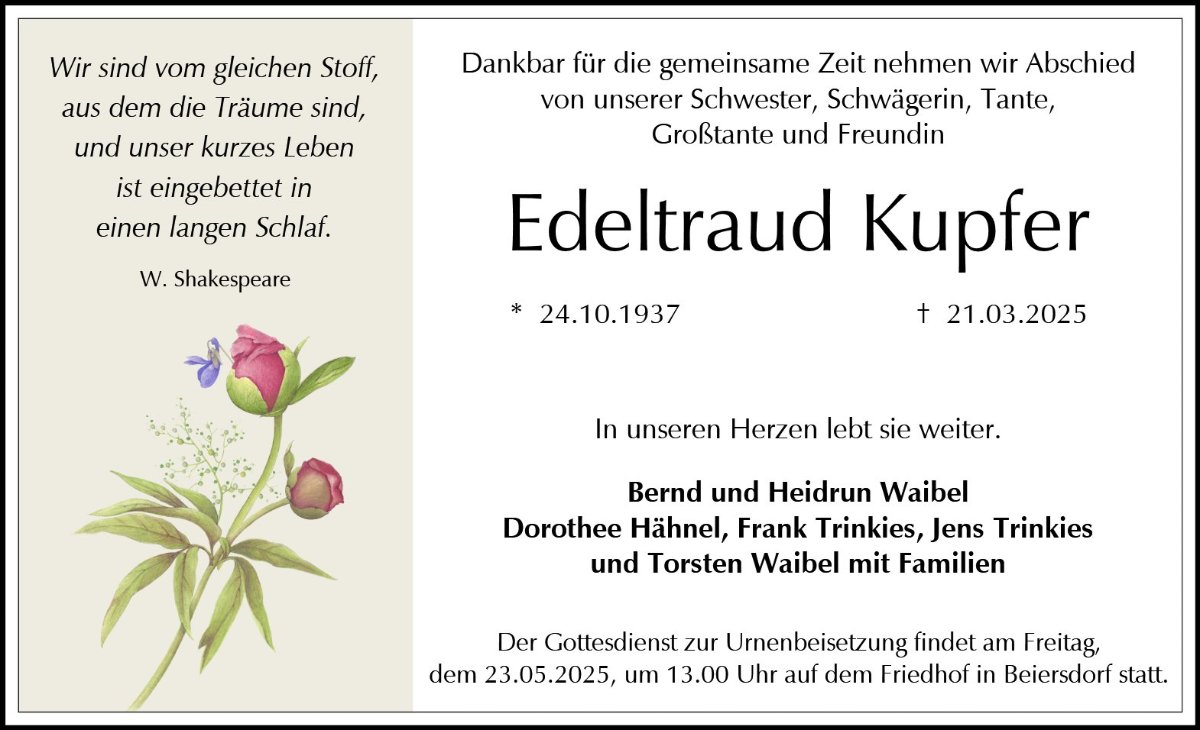 in dieser Zeit wünschen wir Ihnen viel Kraft, den erlittenen Verlust zu verarbeiten. Als Zeichen unserer Anteilnahme entzünden wir dieses erste Licht. Möge unsere Gedenkseite Ihnen helfen, Erinnerungen aufrecht zu halten, mit anderen zu teilen und Ihnen helfen, die Zeit der Trauer besser zu durchleben.