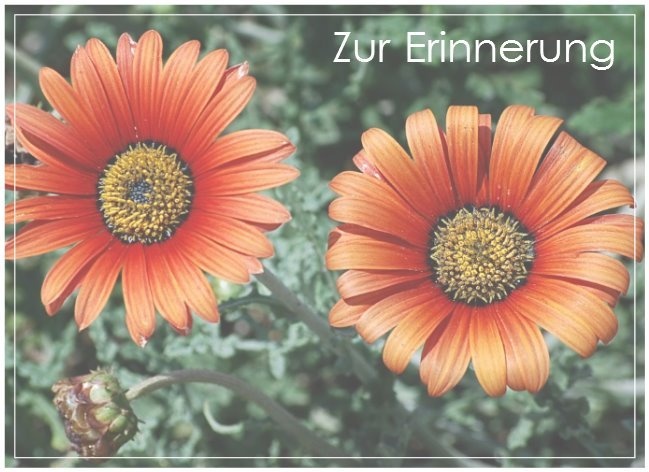 diese Seite wurde von uns eingerichtet, um in der Zeit der Trauer und danach, Möglichkeiten zu haben, seiner Lieben zu gedenken und Erinnerungen aufrecht zu erhalten. Der Austausch von Gedanken, Gefühlen und Bildern kann und möge Ihnen dabei helfen. Wir wünschen Ihnen dabei viel Kraft und Zusammenhalt.