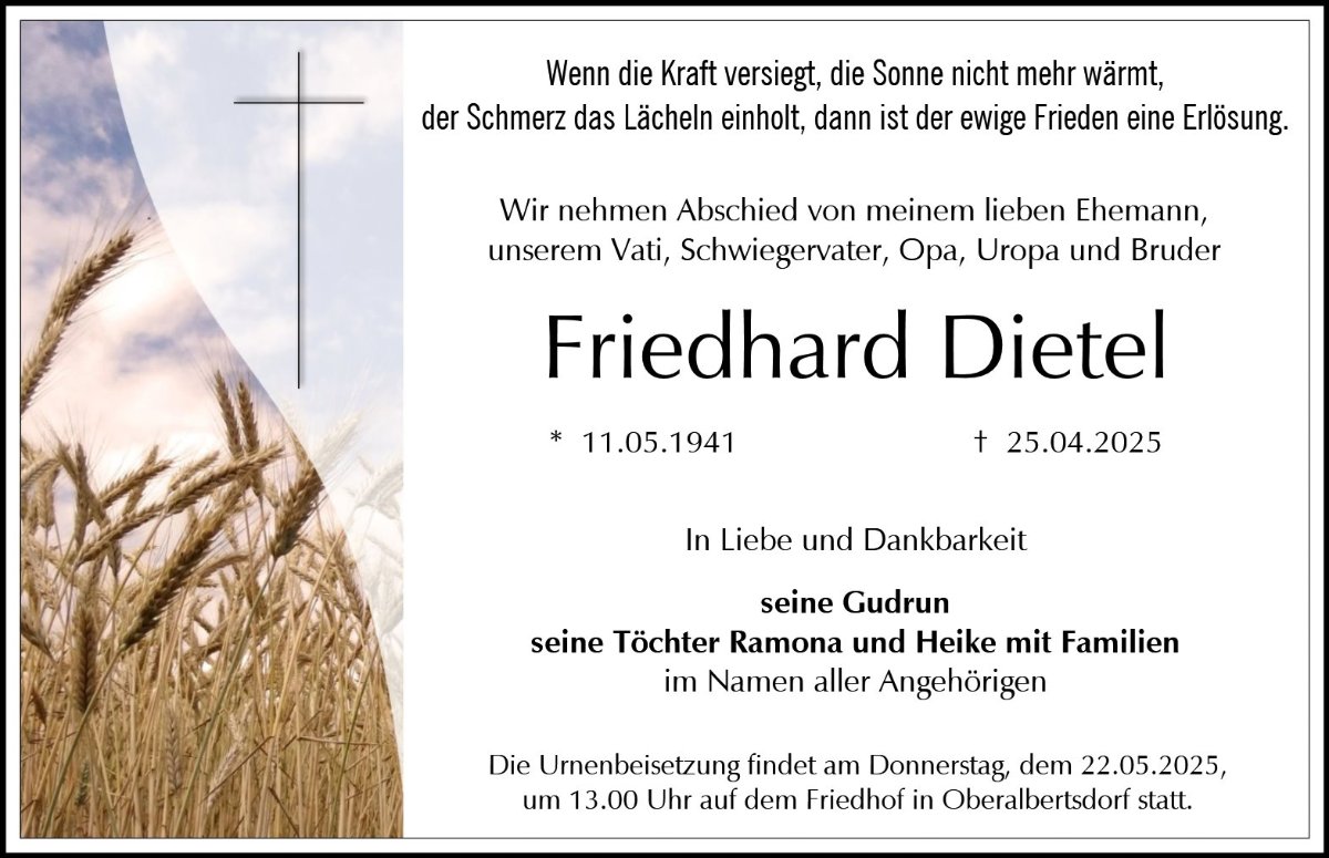 Friedhard Dietelgestorben am 25. April 2025
