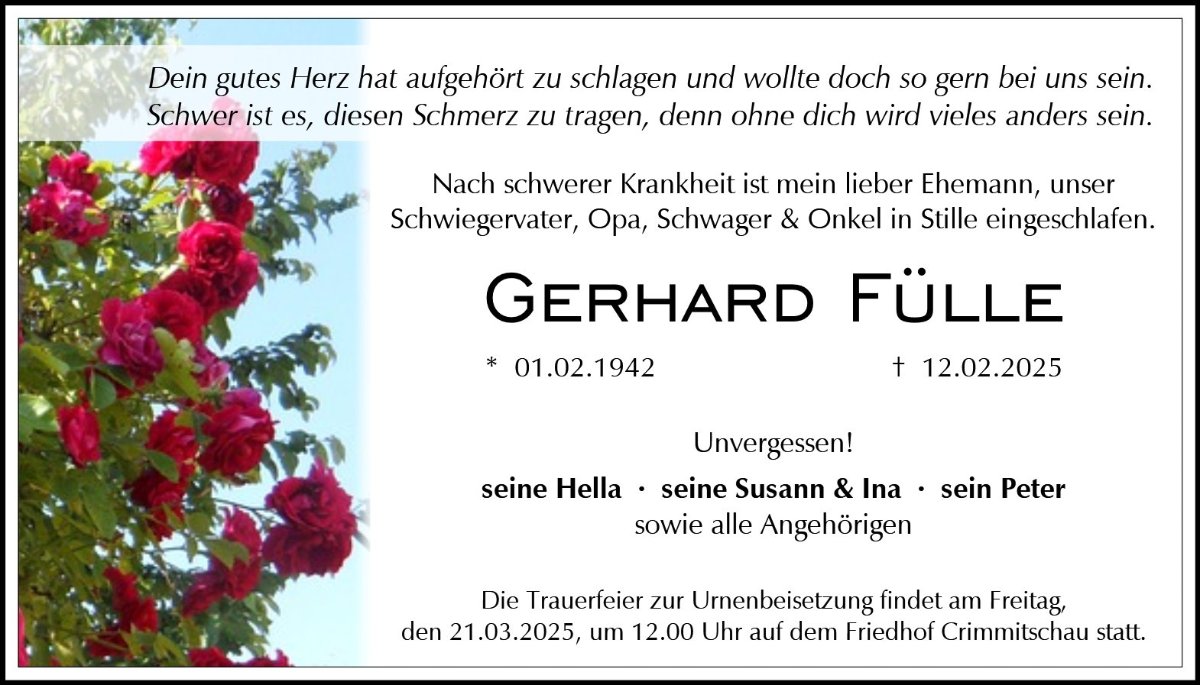 gestorben am 12. Februar 2025 in Werdau OT Langenhessen