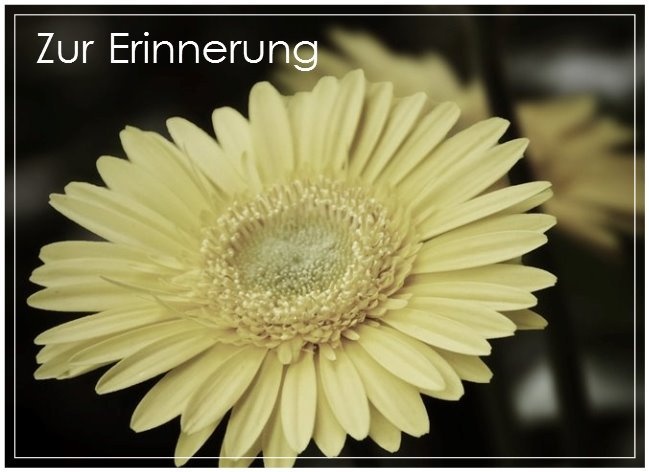 diese Gedenkseite soll Ihnen helfen, aus der Trauer liebevolle Erinnerung wachsen zu lassen. Sammeln Sie Bilder, Gedanken und Erinnerungen an Ihren Verstorbenen und teilen Sie diese mit anderen Trauernden. Für die kommende Zeit seien Ihnen unsere aufrichtige Anteilnahme und unser Mitgefühl gewiss.