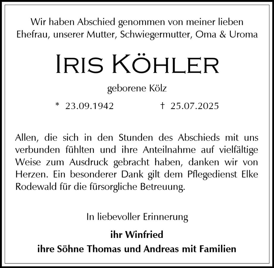 Iris Köhlergestorben am 25. Juli 2025