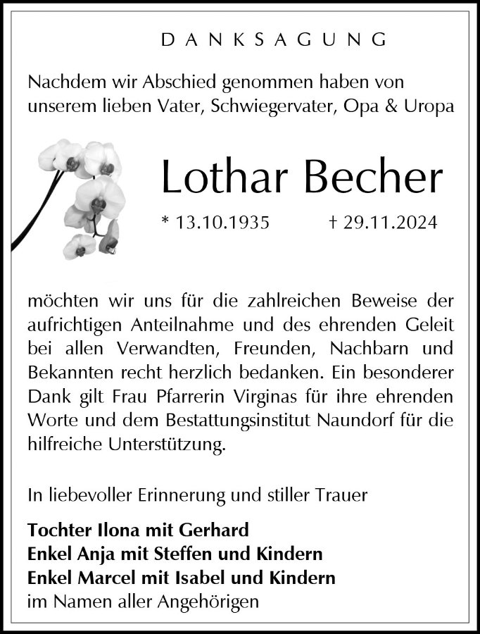 wir wünschen Ihnen viel Kraft und dass Sie Menschen um sich haben, die Ihnen in dieser schweren Zeit beistehen und Halt geben. Auf unserer Gedenkseite können Sie Erinnerungen, Erlebtes, Gedanken und Gefühle miteinander teilen und so das Andenken gemeinsam wachhalten.