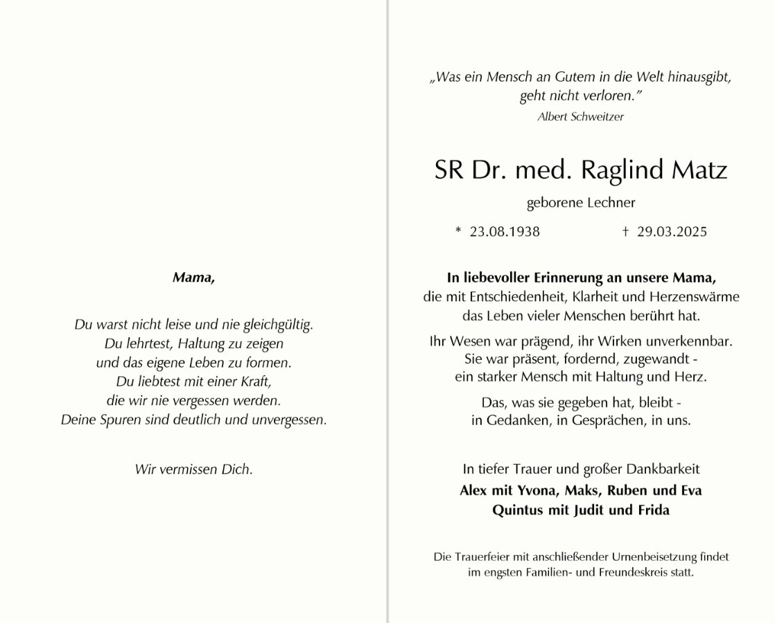 in diesen Tagen fühlen wir mit Ihnen und wünschen Ihnen, dass Sie aus den glücklichen Erinnerungen Kraft schöpfen, um positiv in die Zukunft zu gehen. Diese Gedenkseite möge Ihnen dabei helfen, Ihre Trauer zu teilen und das Andenken gemeinsam wachzuhalten.