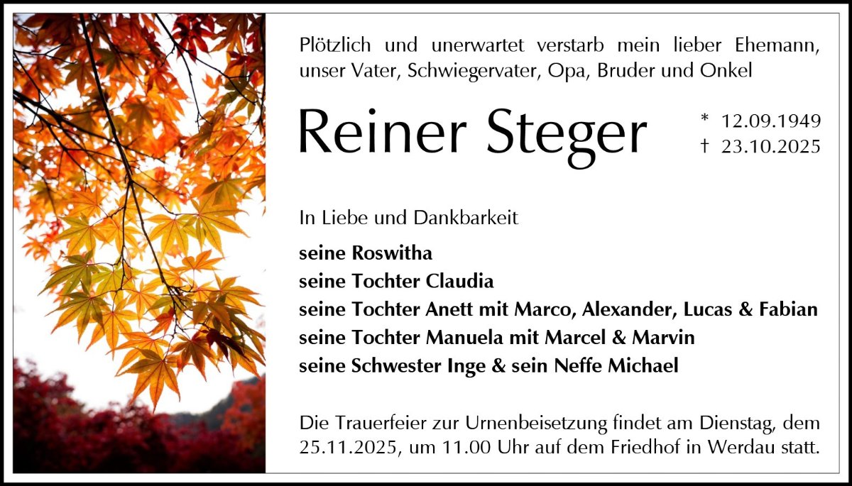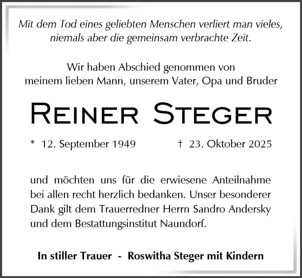Reiner Stegergestorben am 23. Oktober 2025
