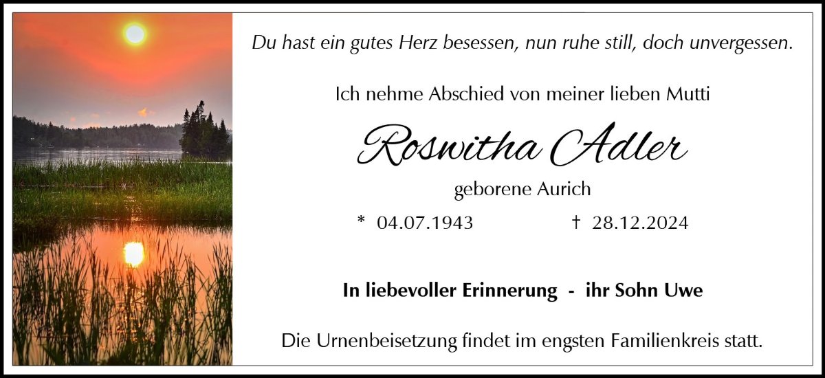 <p><br></p><p>Sehr verehrte Angehörige,</p><p><br></p><p>in dieser Zeit wünschen wir Ihnen viel Kraft, den erlittenen Verlust zu verarbeiten. Als Zeichen unserer Anteilnahme entzünden wir dieses erste Licht. Möge unsere Gedenkseite Ihnen helfen, Erinnerungen&nbsp;aufrecht zu halten,&nbsp;mit anderen zu teilen und Ihnen helfen, die Zeit der Trauer besser zu durchleben.</p><p><br></p><p>In Verbundenheit</p>