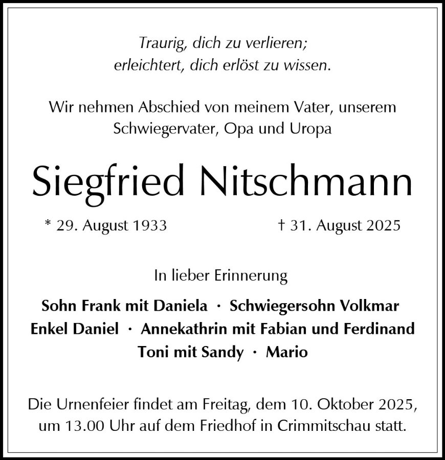 Siegfried Nitschmanngestorben am 31. August 2025