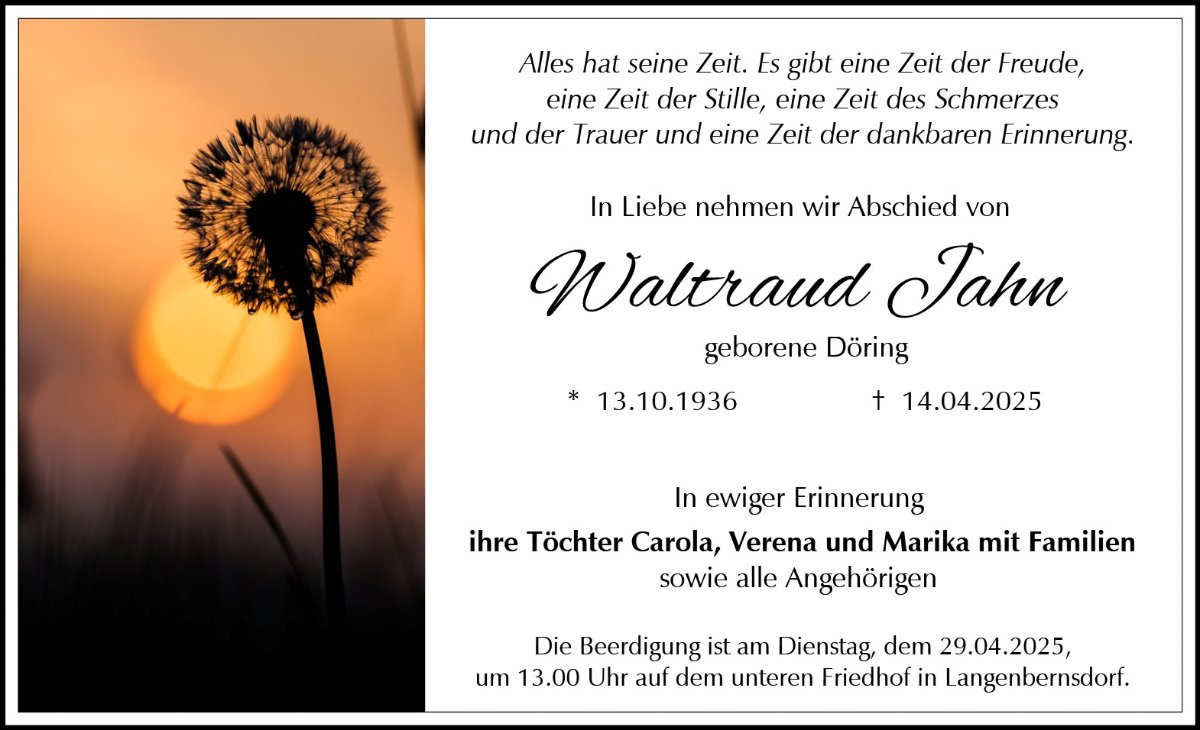 gestorben am 14. April 2025 in Langenbernsdorf OT Trünzig