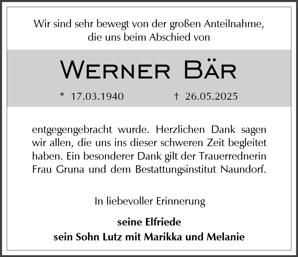 Werner Bärgestorben am 26. Mai 2025